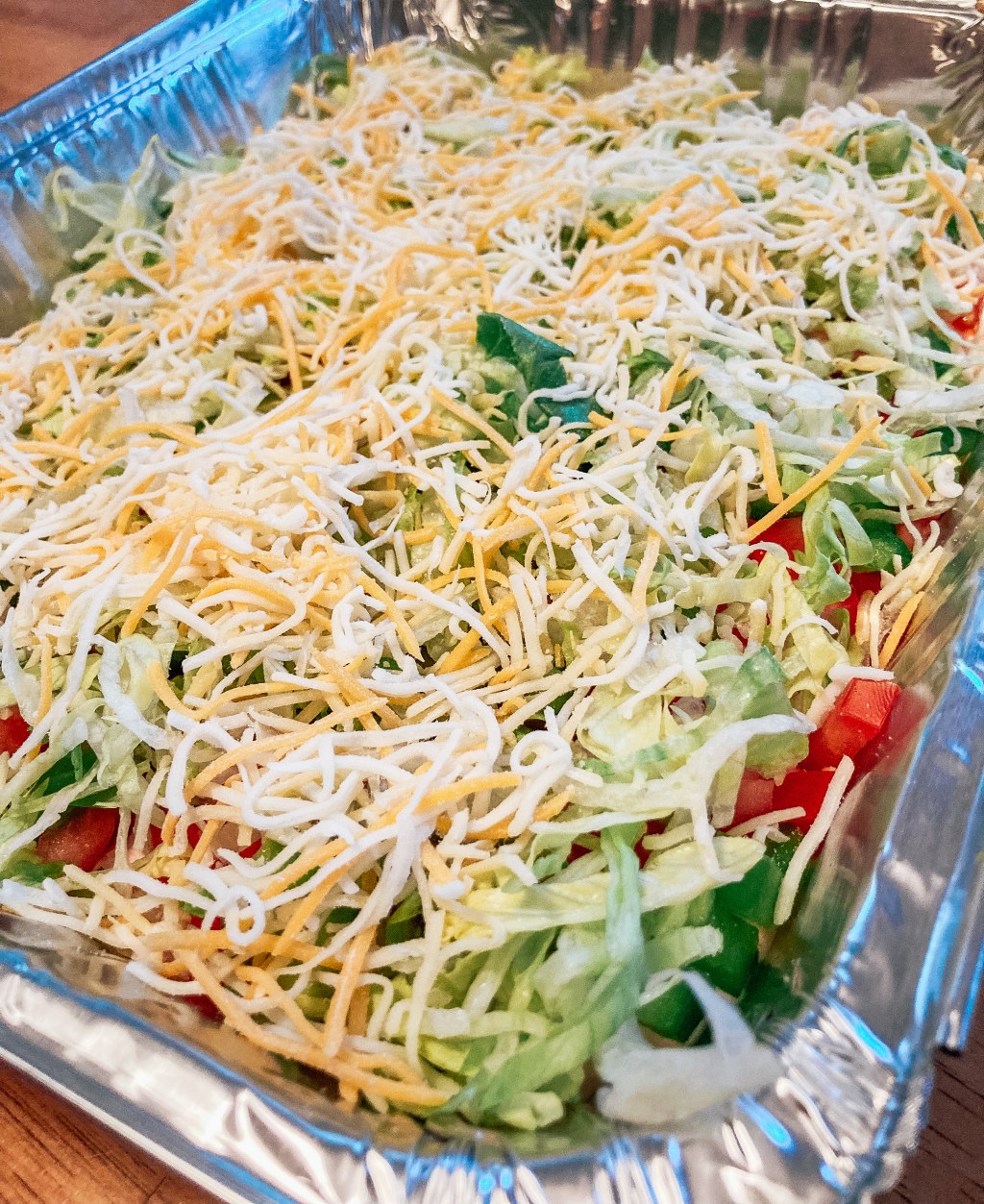 4.) Sprinkle shredded lettuce on top