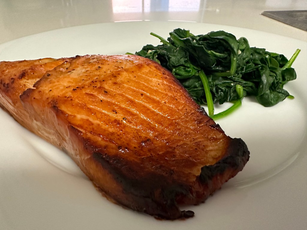 1.) Shake lemon pepper and garlic powder on both sides on salmon