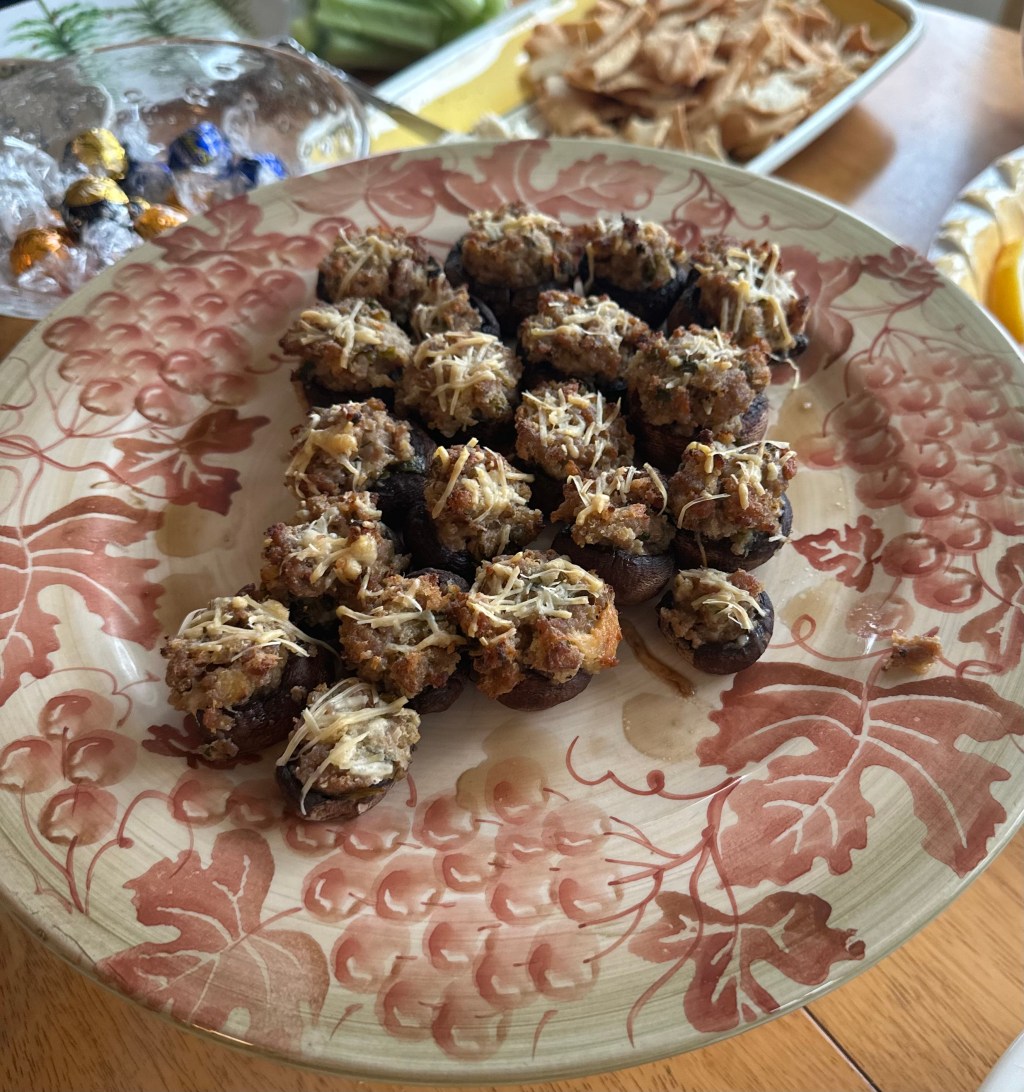 7.) Stuff mushrooms with sausage mixture, top with shredded parm